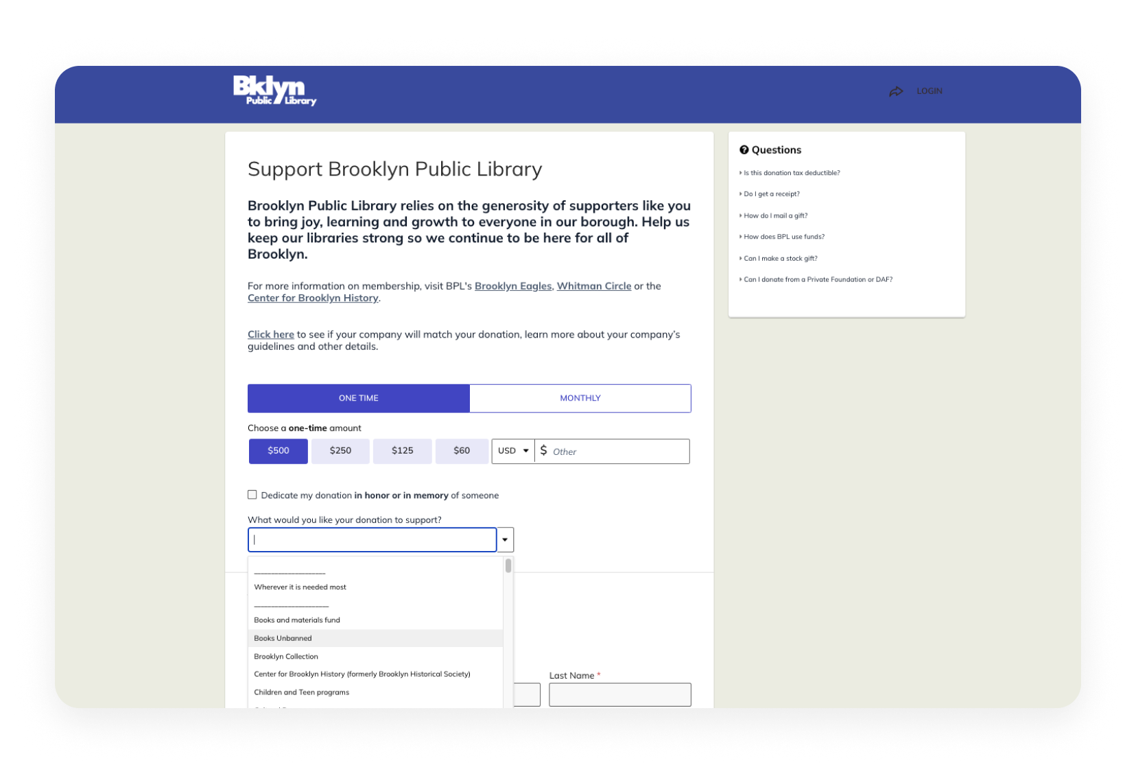 Find a comprehensive fundraising suite to support Brooklyn’s 61 library branches and a myriad of programs
