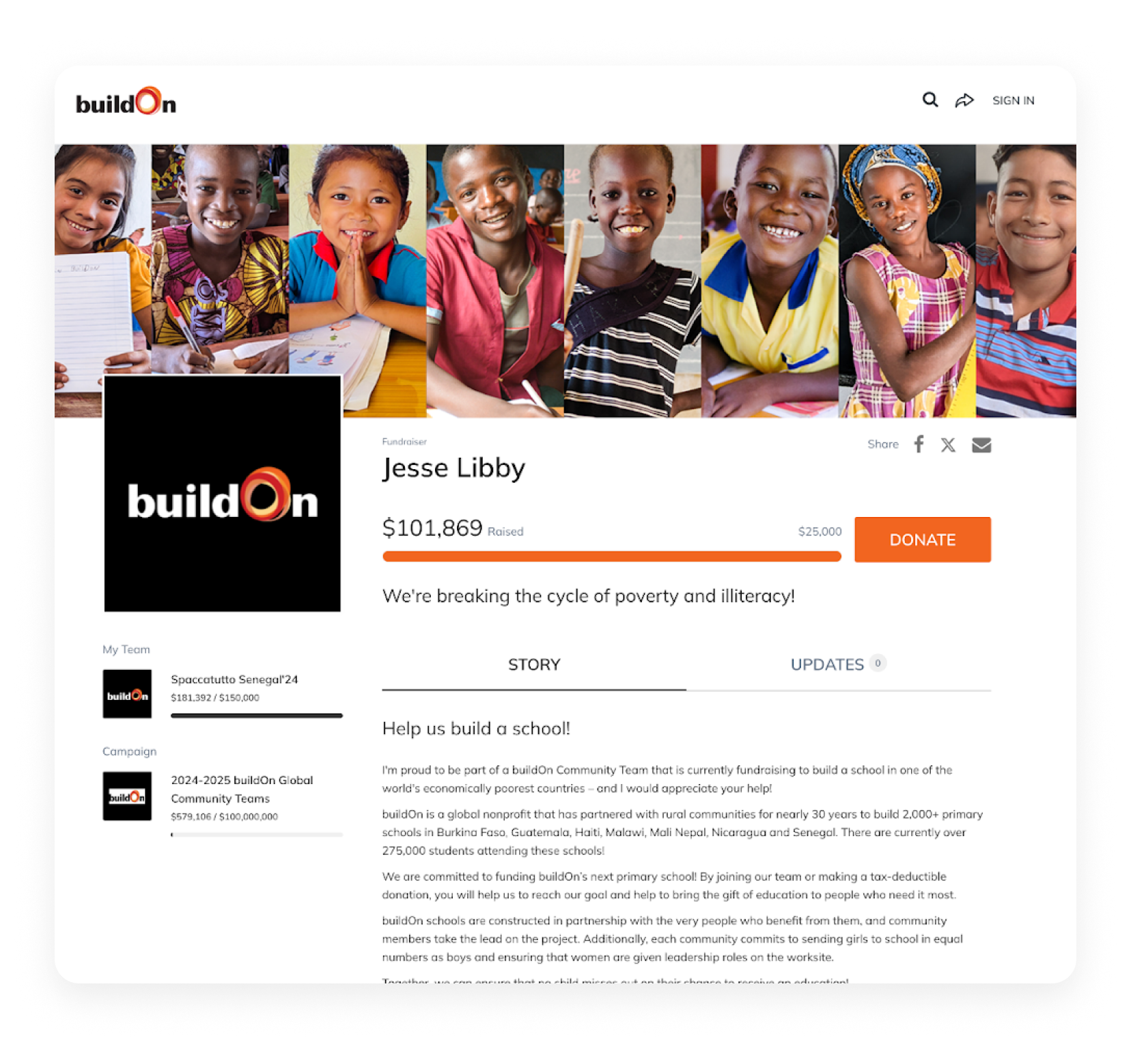 Peer-to-peer fundraising is such a powerful component of our fundraising strategy because it allows us to introduce thousands of people to the organization through hundreds of buildOn ambassadors. Each year, our peer-to-peer fundraising brings in over $1 million—enough to build almost 30 schools! We are so grateful for a reliable platform like GoFundMe Pro to support us and our goals.