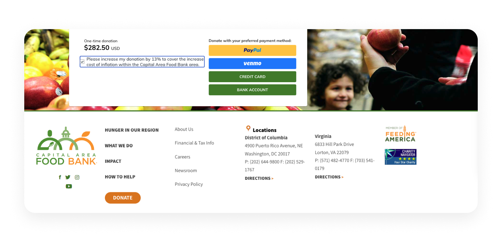 How Capital Area Food Bank increased donor covered fees and conversion rates
