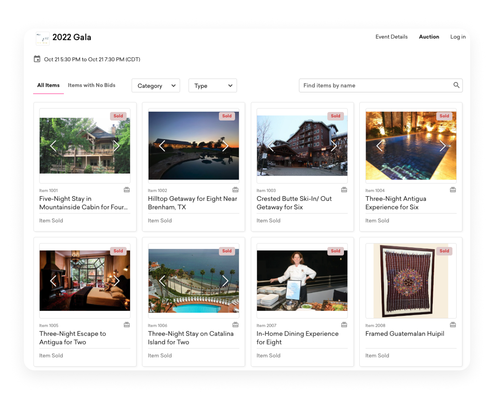 - Silent auction where attendees could bid on or buy the available items, like trips and local items from Guatemala