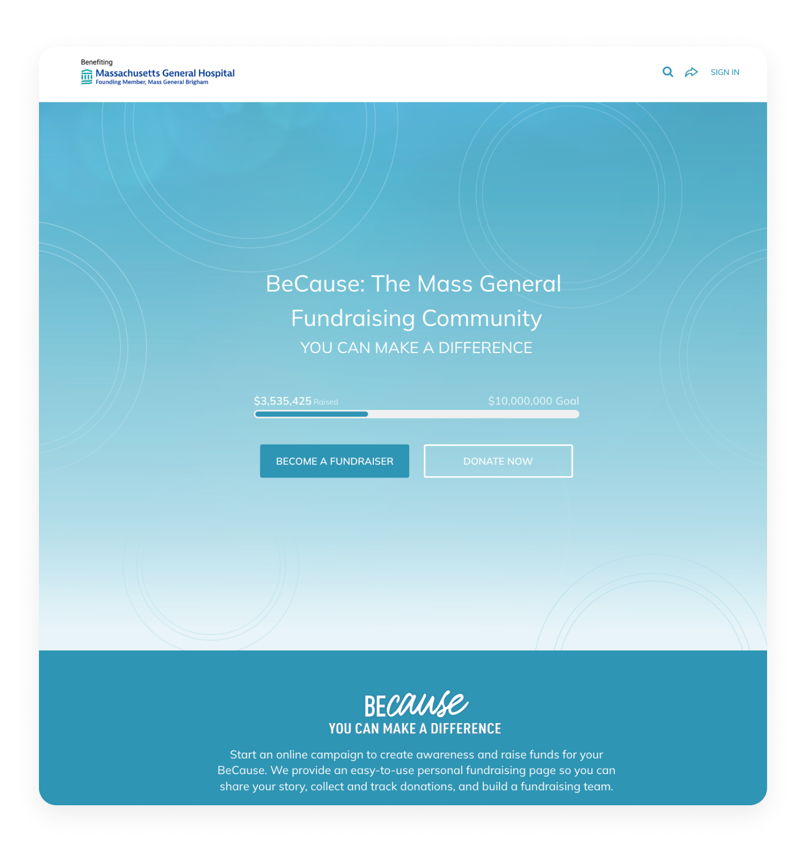 At Mass General, 100% of every dollar raised goes directly to benefit the hospital. The team markets the community fundraising program with one major incentive: Every dollar raised is managed by Mass General, so fundraisers don’t have to transfer money to the organization or be the go-between for sending donors’ tax receipts.