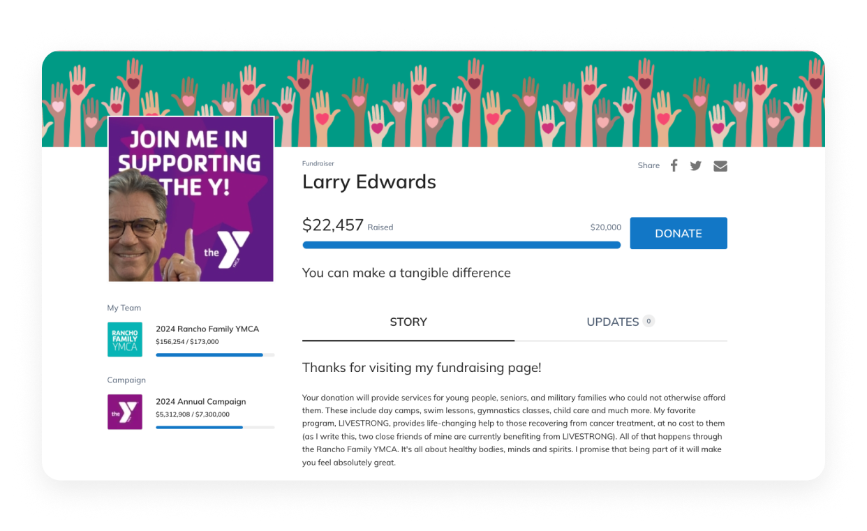 True community thrives when people share a common interest and have ways to communicate with each other. The YMCA of San Diego County team reminds supporters that the real reward of the Annual Campaign is the act of giving itself. With GoFundMe Pro, supporters can showcase goal achievement and donor stats and celebrate beyond the dollars raised. The ease of fundraising and the power of community are why a majority of fundraisers return each year.