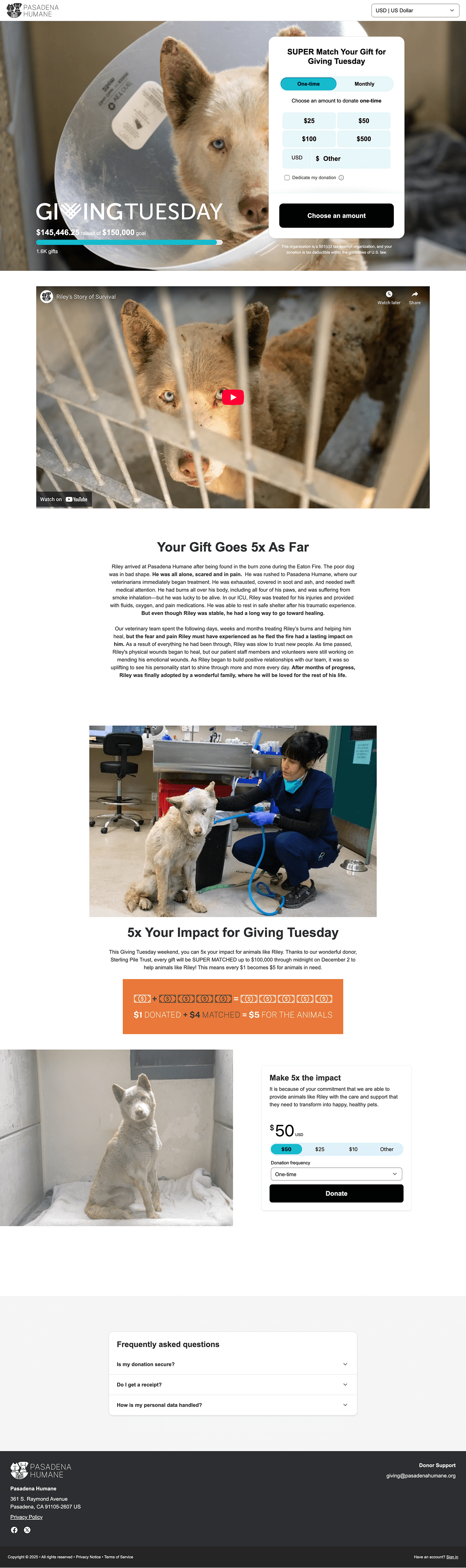 Why it inspires: Nothing sparks action like a 5x match, reinforced throughout the page to show donors how much more their gift can do.