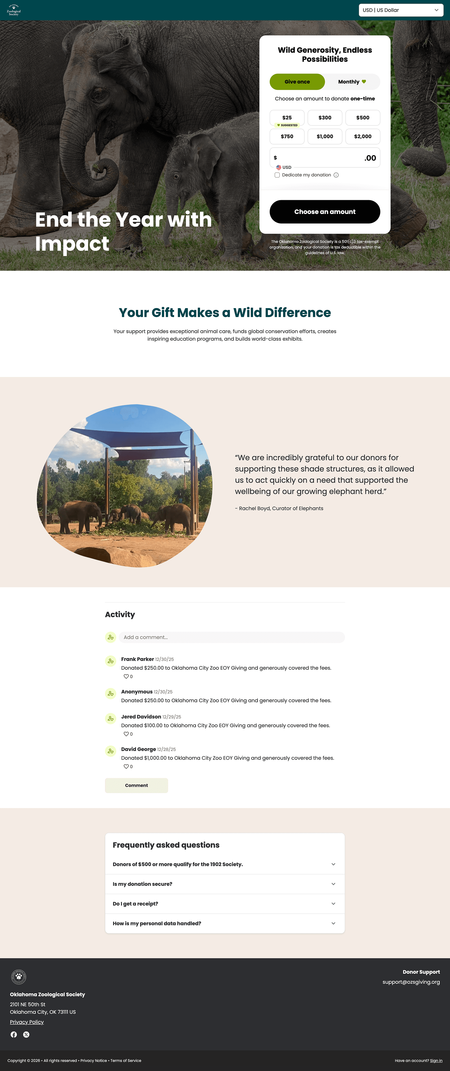 Why it inspires: This custom landing page powered by Studio matches the nonprofit's branding and offers a more engaging donor experience.