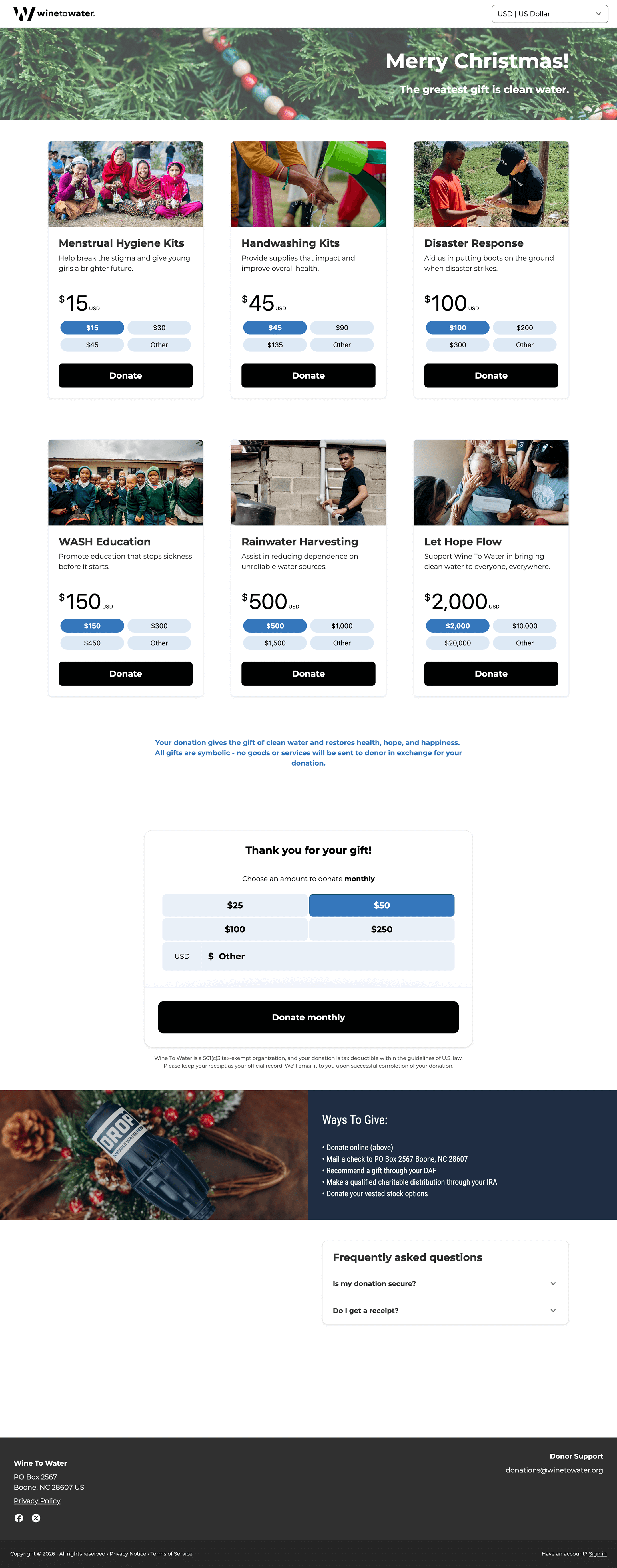 Why it inspires: With image-rich impact tiles, this campaign makes the organization’s mission tangible, using visual storytelling to help donors quickly see where their support goes and why it matters.